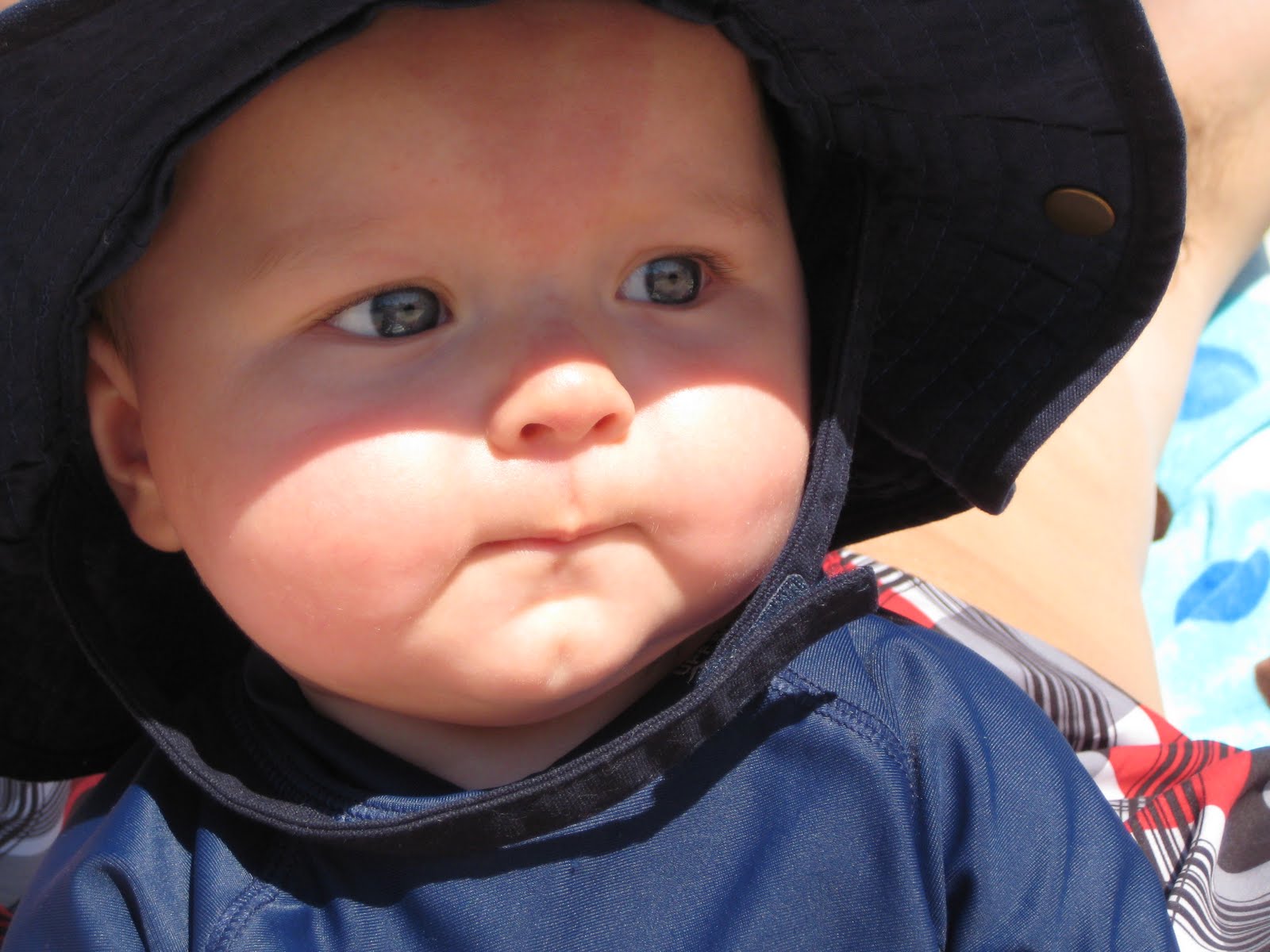... when he shows off his newly acquired sitting skills, especially in precarious places,