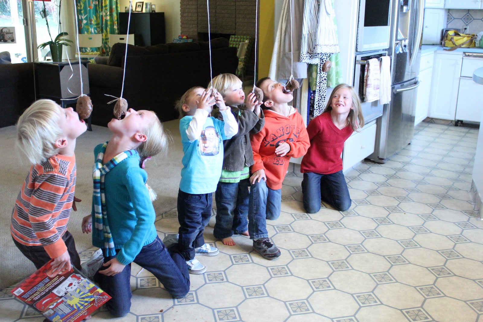 next, we played chew the "tire" (chocolate donut) off the string: kids version and adults version. it was pretty fun as you can see for yourself. zach and steven were crowned champions, like father, like son.